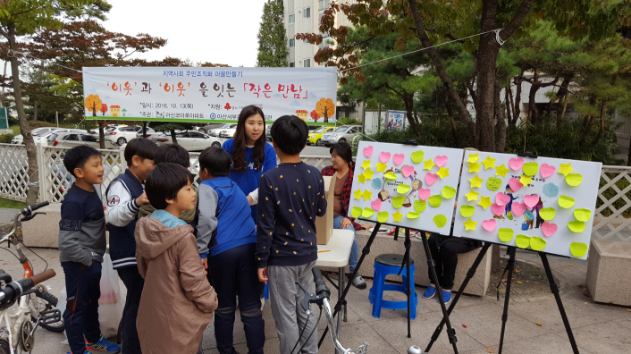 마을만들기 지역주민행사 페이지 정보 작성자 댓글 0건 조회 2,592회 작성일 16-11-15 18:29 본문 *2016.10.13(목)/마을만들기 지역주민행사/아산코아루아파트/약200명 *지원:충남사회복지공동모금회 목록 답변 이전글2016년 직원연수 16.11.15 다음글외국인노동자(고려인) 역사문화탐방 16.10.19 댓글목록 댓글목록 등록된 댓글이 없습니다.