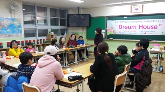 가족기능강화사업 "Dream House" 가족관계개선프로그램 페이지 정보 작성자 댓글 0건 조회 3,292회 작성일 14-12-26 11:31 본문 2014.12.22(월)/가족기능강화사업 "Dream House"/가족관계개선프로그램 진행/충남사회복지공동모금회 지원 목록 답변 이전글늘푸른 노인교실 수료식 및 발표회 14.12.26 다음글현대자동차(아산) 가족봉사단/자원봉사자교육/사업평가회 14.12.26 댓글목록 댓글목록 등록된 댓글이 없습니다.