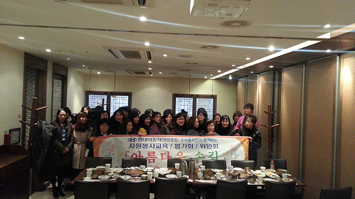 자원봉사교육/평가회/위안회(현대차 주부봉사단) 페이지 정보 작성자 댓글 0건 조회 3,164회 작성일 14-01-29 14:10 본문 2014.01.17/자원봉사교육/평가회/위안회(현대차 주부봉사단) 목록 답변 이전글청소년인재양성 문화체험(에버랜드) 14.02.13 다음글2014년 시무식 14.01.20 댓글목록 댓글목록 등록된 댓글이 없습니다.