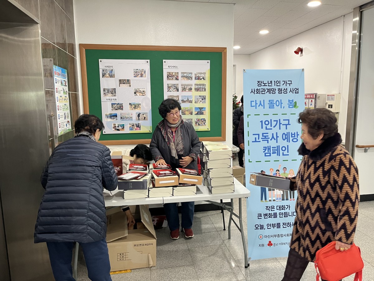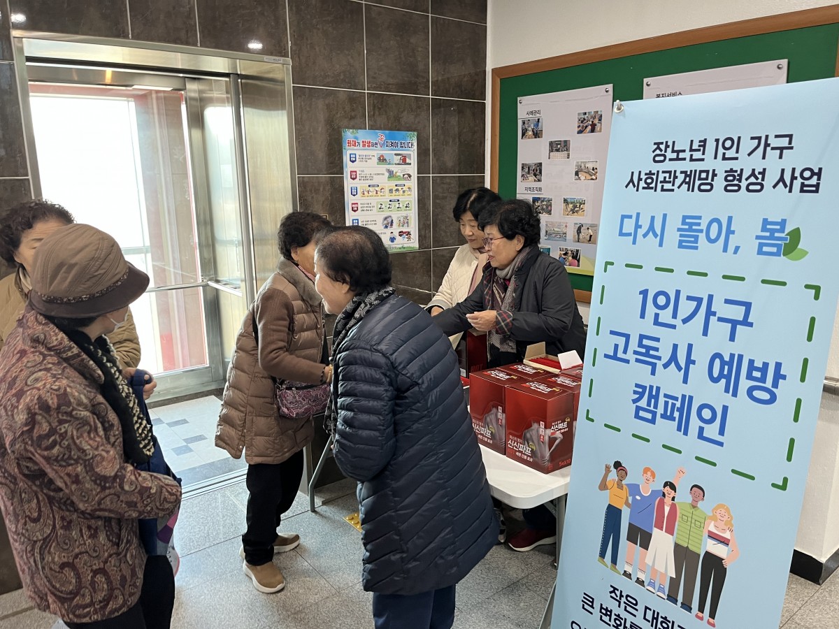 내용: 장노년 1인가구의 사회관계망 형성 사업 참여자들의 생활복지운동(고독사 예방 캠페인) 실시