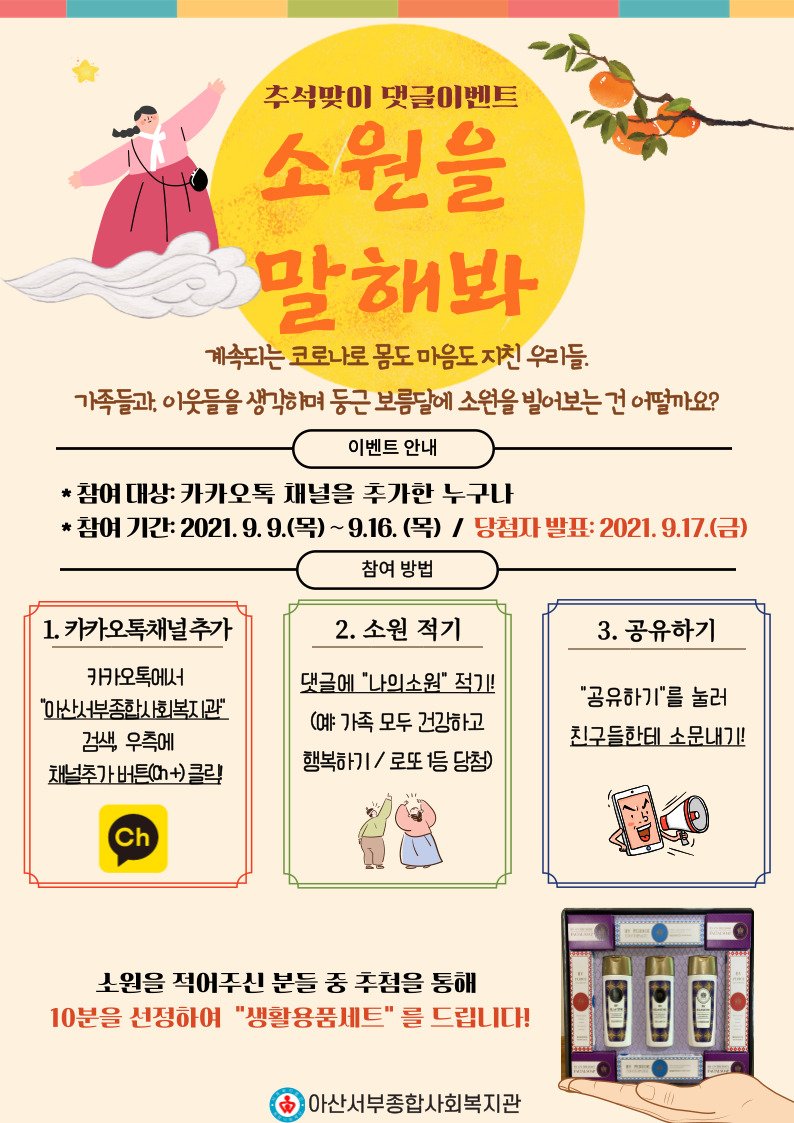 아산서부종합사회복지관 카카오채널 이벤트 3탄!
