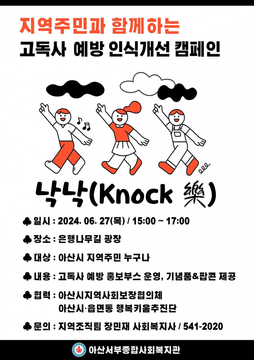 지역주민과 함께하는 고독사 예방 인식개선 캠페인 안내 페이지 정보 작성자 최고관리자 작성일 24-06-24 09:39 조회 807회 댓글 0건 본문 지역주민과 함께하는 고독사 예방 인식개선 캠페인 이전글2024년 희망나눔재단 산하시설 신나라어린이집 원장 채용 1차 서류 합격자 공고 다음글2024년 제2차 운영위원회 개최 안내 목록 답변 댓글목록 0 댓글목록 등록된 댓글이 없습니다.
