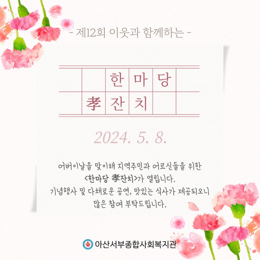 지역주민과 어르신을 위한 제 12회 이웃과 함께하는 "한마당 孝 잔치" 행사를 마련했습니다.