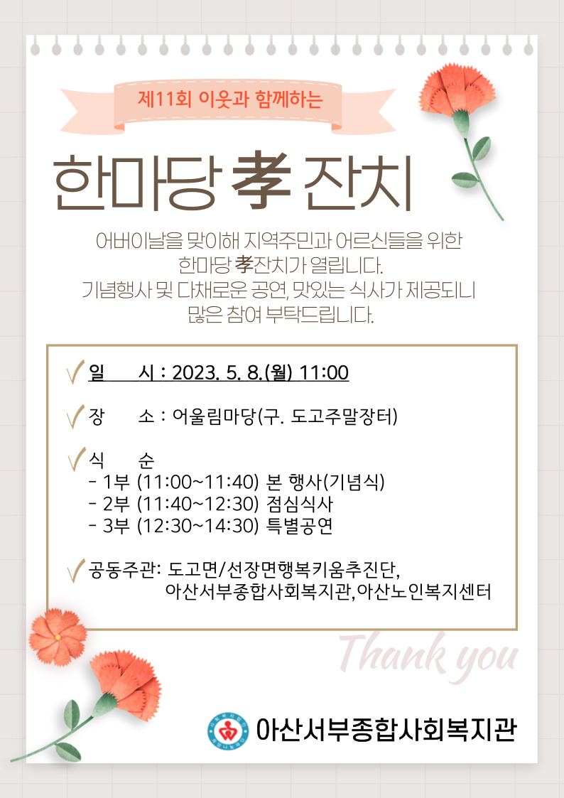 2023년 5월 8일 어버이날 행사 "한마당 孝 잔치"가 열립니다!!
