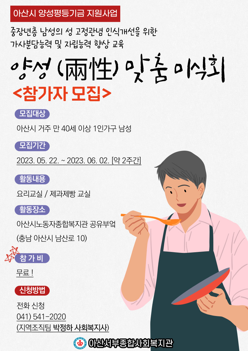 아산시 양성평등기금 지원사업 양성(兩性) 맞춤 미식회 참가자 모집 페이지 정보 작성자 최고관리자 작성일 23-05-22 11:46 조회 1,201회 댓글 0건 본문 아산시 양성평등기금 지원사업 양성(兩性) 맞춤 미식회 참가자 모집 이전글마을동아리 오카리나&우쿨렐레 참가자 모집 다음글2023년 종사자(사회복지사-정규직) 1차 서류합격자 발표 목록 답변 댓글목록 0 댓글목록 등록된 댓글이 없습니다.